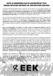 ΑΝΑΚΟΙΝΩΣΗ ΓΙΑ ΔΕΘ: ΚΑΤΩ ΤΑ ΜΝΗΜΟΝΙΑ ΚΑΙ ΟΙ ΔΙΑΧΕΙΡΙΣΤΕΣ ΤΟΥΣ. ΕΝΙΑΙΟ ΕΡΓΑΤΙΚΟ ΜΕΤΩΠΟ ΓΙΑ ΤΗΝ ΕΡΓΑΤΙΚΗ ΕΞΟΥΣΙΑ
