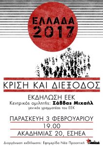 ΑΘΗΝΑ: Κεντρική Πολιτική Εκδήλωση του ΕΕΚ “ΕΛΛΑΔΑ 2017 : Κρίση και Διέξοδος”