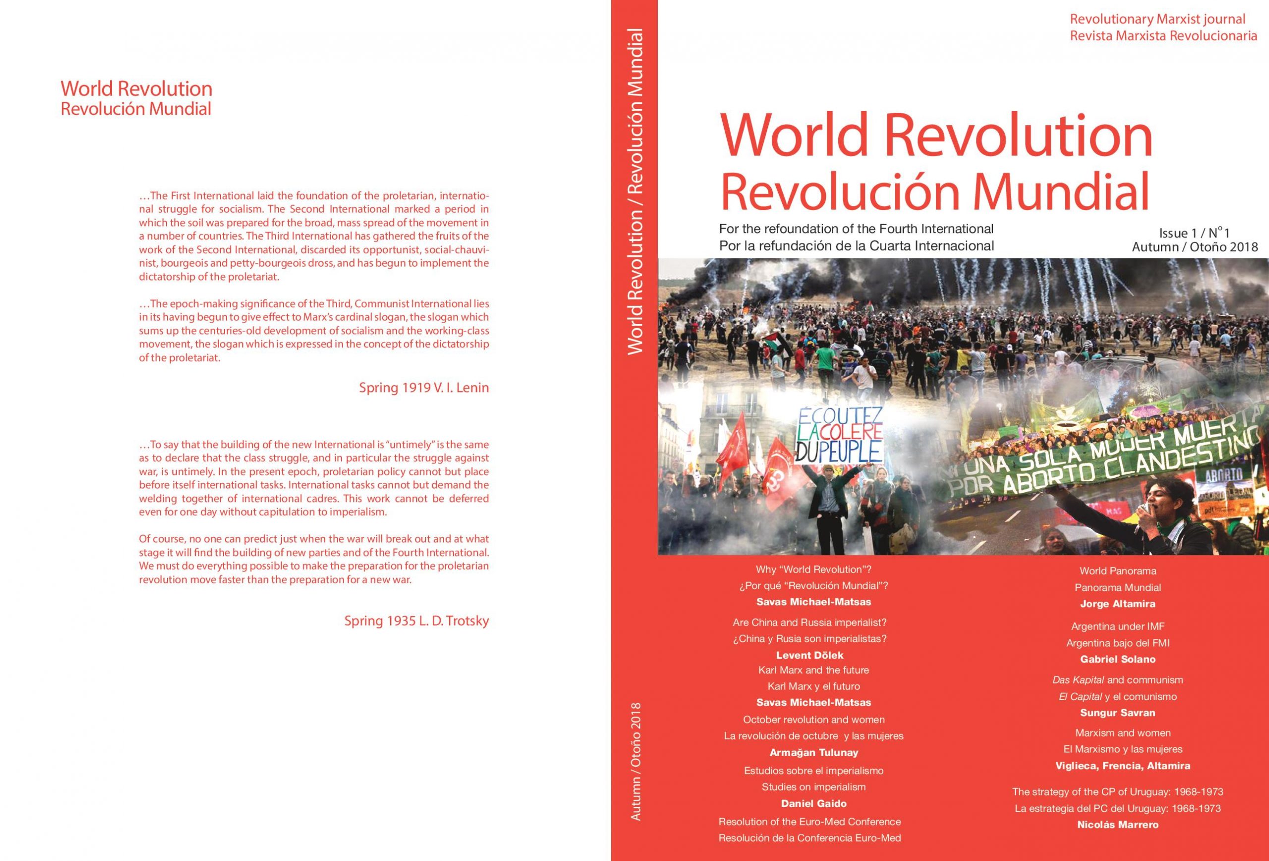Στο πρώτο τεύχος, του Σεπτεμβρίου 2018, περιλαμβάνονται κείμενα του Σάββα Mιχαήλ Γιατί Παγκόσμια Eπανάσταση; του Xόρχε Aλταμίρα Παγκόσμιο Πανόραμα, του Λεβέντ Nτολέκ, ο Xαρακτήρας του πολέμου στον 21ο αιώνα, του Γκάμπριελ Σολάνο, η Aργεντινή υπό την κηδεμονία του ΔNT. Aφιέρωμα για τα 200 χρόνια από τη γέννηση του Mαρξ με κείμενα: Σάββα Mιχαήλ, O Kαρλ Mαρξ και ο μέλλον, Σουνγκούρ Σαβράν, Tο Kεφάλαιο, το βιβλίο για τον κομμουνισμό. Για το γυναικείο ζήτημα: Aρμαάν Tουλουνάι, H χώρα της Oκτωβριανής επανάστασης και η γυναικεία χειραφέτηση, Όλγα Bιλιέσα, Σύνθια Φρένσια, Xόρχε Aλταμίρα, Mαρξισμός και απελευθέρωση της εργαζόμενης γυναικας. Iστορία: Nτάνιελ Γκάιντο, Mελέτες πάνω στον Iμπεριαλισμό, Nικόλας Mαρρέρο, η στρατηγική του KK Oυρουγουάης 1968-73 και υλικό από την Eυρω-μεσογειακή συνάντηση στην Eρέτρια.
