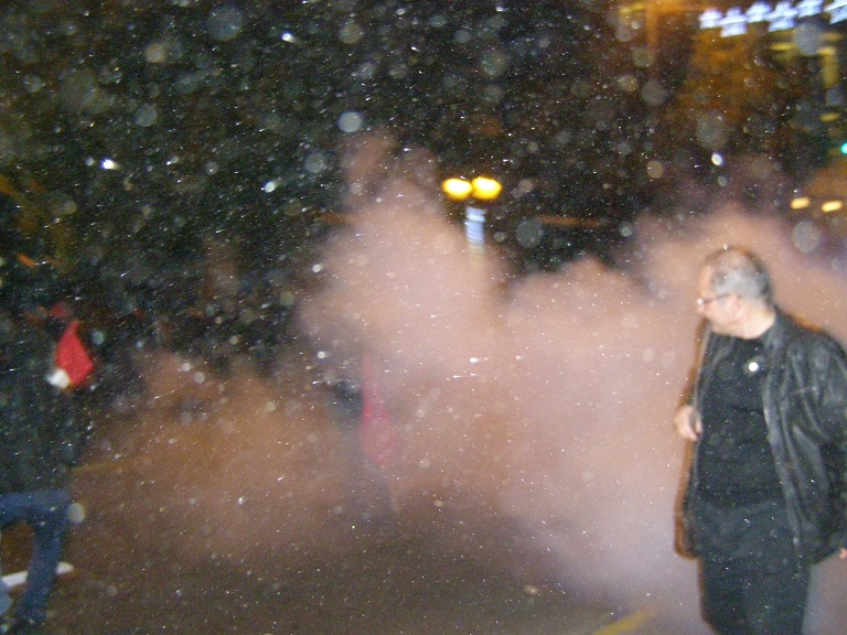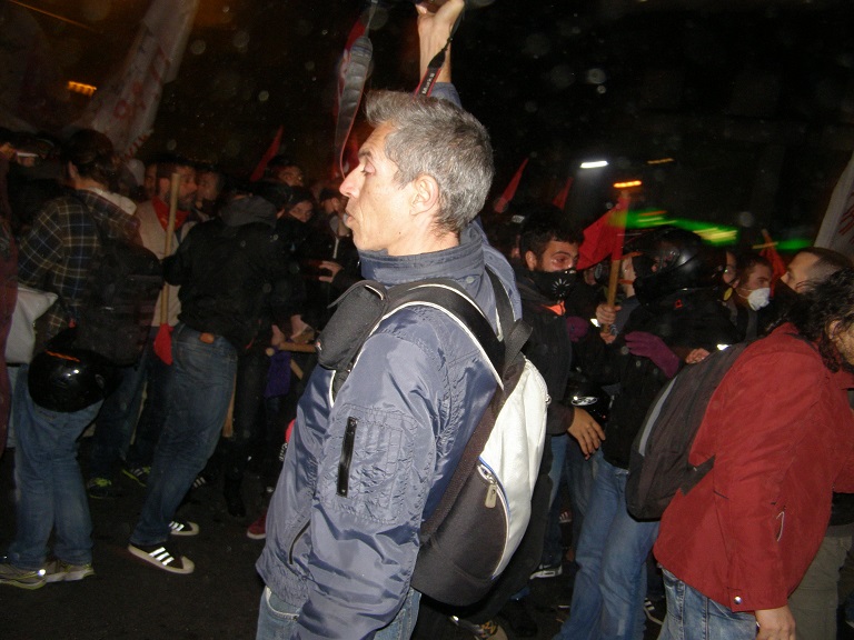 Η ΛΑΕ, παραβιάζοντας τη συμφωνία να προηγούνται οι φοιτητικοί σύλλογοι μπήκε επικεφαλής στην πορεία, με αποτέλεσμα περί τα 400 άτομα να πορευτούν μόνοι τους. Στη Σταδίου, στο ύψος της οδού Αμερικής, μπροστά στην παρατεταγμένη δύναμη της αστυνομίας που απαγόρευε τη συνέχιση της πορείας προς τη Βουλή και την πρεσβεία των ΗΠΑ ο Π. Λαφαζάνης προσπάθησε να πείσει τον επικεφαλής της αστυνομικής δύναμης ότι “είμαστε ειρηνικοί διαδηλωτές και δεν έχουμε όπλα”. Η αστυνομία δεν υποχώρησε και έτσι, μια ομάδα 20-25 άτομα επιχείρησαν -προφανώς συμβολικά- να “σπάσουν” τον κλοιό. Μετά δυο τρεις “φισουνιές” με χημικά ασφυξιογόνα το μπλοκ της ΛΑΕ έστριψε στην Πανεπιστημίου απ’ όπου το ΠΑΜΕ είχε αποχωρήσει και στα Προπύλαια διαλύθηκαν.