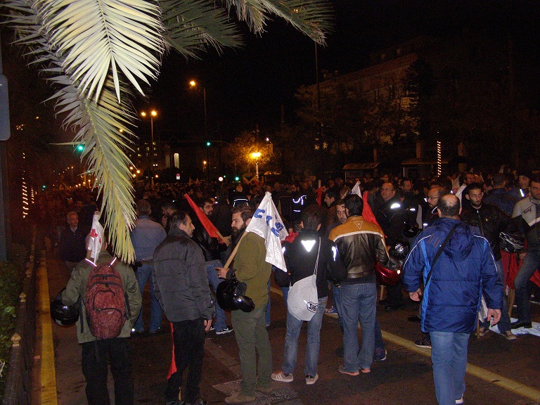 Οι δυνάμεις του ΠΑΜΕ, περί τις 8-10 χιλιάδες βάδισαν στην οδό Πανεπιστημίου. Στο ύψος της Ομήρου, όπου ήταν παρατεταγμένες οι “κλούβες” της αστυνομίας, σταμάτησαν, και ύστερα από λίγο βάδισαν προς την Ομόνοια.
