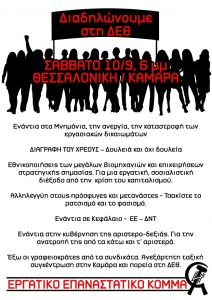 ΚΑΛΕΣΜΑ ΑΓΩΝΑ ΓΙΑ ΤΗ Δ.Ε.Θ. ΔΙΑΔΗΛΩΝΟΥΜΕ ΣΑΒΒΑΤΟ 10/9, 6 μ.μ. ΘΕΣΣΑΛΟΝΙΚΗ/ΚΑΜΑΡΑ