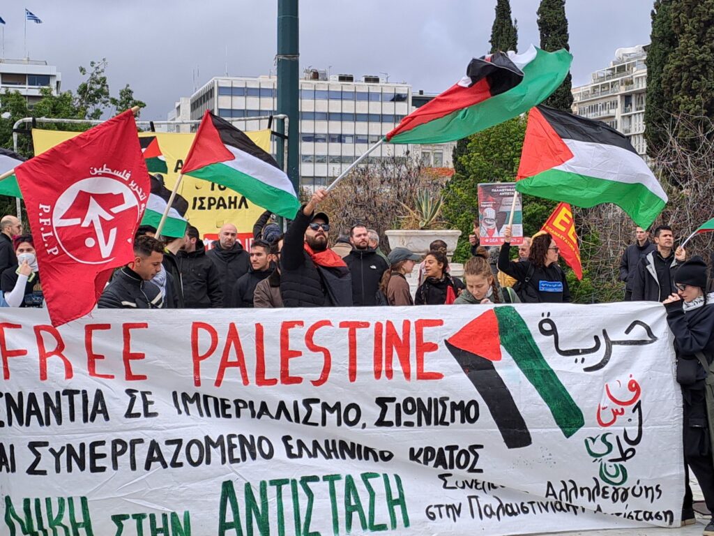 Με συνθήματα αλληλεγγύης στο λαό της Παλαιστίνης και καταγγελίες κατά του ιμπεριαλισμού, του σιωνισμού και της κυβέρνησης Μητσοτάκη, πραγματοποιήθηκε το μεσημέρι του Σαββάτου 6 Γενάρη συγκέντρωση υπέρ του Παλαιστινιακού λαού στην Αθήνα.