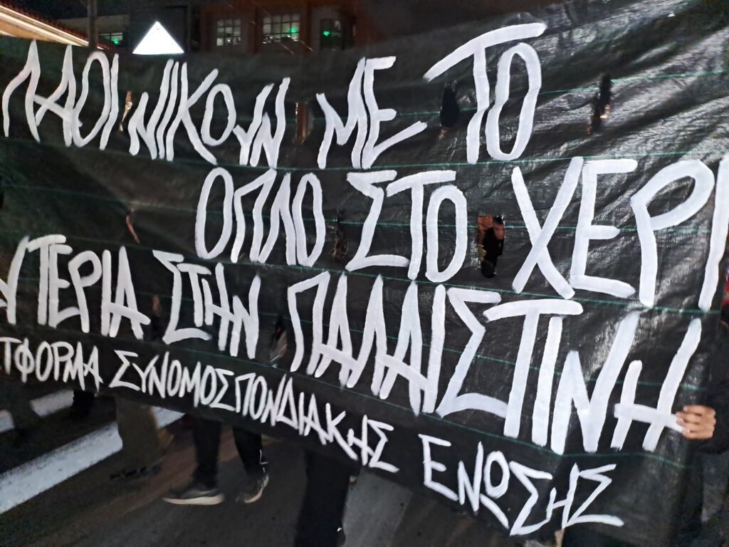 Μια μαχητική πορεία ξεκίνησε από το Πάρκο Ελευθερίας, στην Αθήνα, το βράδυ της Τρίτης, στη δεύτερη ακριβώς επέτειο της Πλημμύρας αλ-Άκσα στις 7 Οκτωβρίου 2023. Η κρατική TV εκτίμησε το πλήθος 3.000.Η πορεία ήταν ειρηνική, όμως η αστυνομία χτύπησε και συνέλαβε 20 τουλάχιστον άτομα. Ήταν υπερβάλλων ζήλος και επιδειχθηκε βαρβαρότητα που σαφώς υποκρύπτει πολιτικές σκοπιμότητες. Η επίκληση της ρίψης φωτοβολίδων αποτελεί σαθρο επιχείρημα. Και άλλες φορές έχει συμβεί, χωρίς επίθεση της αστυνομίας. Και απόψε, όταν ρίχτηκαν φωτοβολίδες -το βεληνεκές των οποίων δεν φθάνει την πρεσβεία του Ισραήλ- δεν σημειώθηκε καμία αστυνομική επέμβαση. Η επίθεση της αστυνομίας σημειώθηκε όταν και τα τελευταία μπλοκ απόχωρουσαν στον παράδρομο της Κηφισίας με κατεύθυνση προς το σταθμό Πανόρμου του μετρό. Αστυνομικοί επιτέθηκαν όχι μόνο στην Κηφισίας και στην Κατεχακη αλλά και στην Πανόρμου, ενώ ήταν σαφές ότι οι διαδηλωτές αποχωρούσαν και έμπαιναν στο μετρό. Τι ήθελε να δείξει η κυβέρνηση Μητσοτάκη; Ότι τηρεί τη συμμαχία της με το γενοκτονικό καθεστώς του εκφυλισμενου Νετανιάχου και των φασιστών συμμάχων του Μπεν Γκβιρ και Σμοτριτς; Ή ήταν αντιπερισπασμος μετά την άτακτη υποχώρηση του μπροστά στα αιτήματα του απεργού πείνας Πάνου Ρούτσι και των συγγενών των θυμάτων των Τεμπών; Ο,τι κι αν έχουν στο μυαλό τους (;) είναι καθαρό ότι θα έχουν το λαό μπροστά τους. Τέμπη – Πύλος -Παλαιστίνη, δεν υπάρχει ειρήνη χωρίς δικαιοσύνη”. Και μαζί είναι η ακρίβεια, η εργασιακή σκλαβιά του 13ωρου, η υποβάθμιση της υγείας και παιδείας, τα σκάνδαλα σαν αυτό του ΟΠΕΚΕΠΕ και η χωρίς φραγμούς διαφθορά. Κάτω ο συνεργός του Νετανιάχου, Μητσοτάκης.
