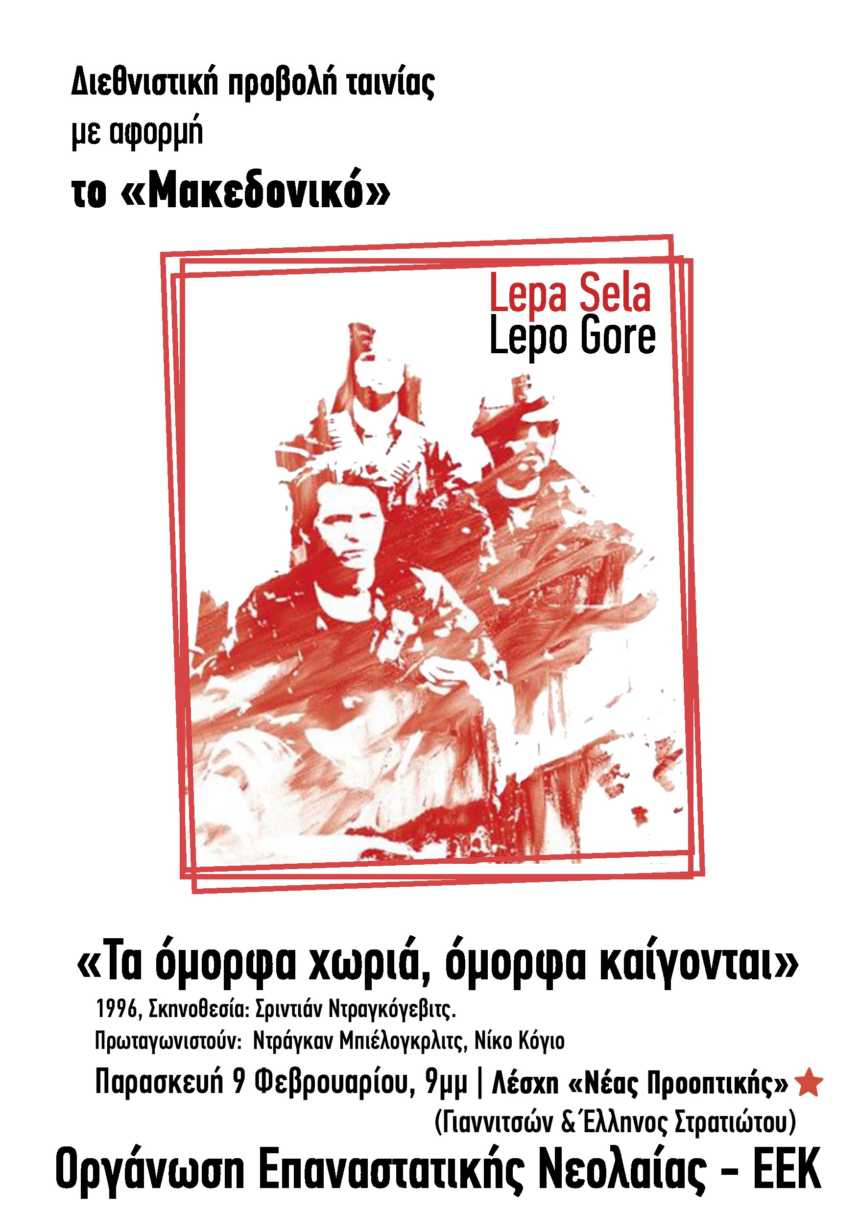 Για να το «θυμηθούμε» καλύτερα, σας καλούμε στην προβολή της ταινίας «Τα όμορφα χωριά, όμορφα καίγονται». Να συζητήσουμε επάνω στο ματωμένο παρελθόν και το δρόμο για ένα διαφορετικό μέλλον θυμίζοντας τα συνθήματα του κομμουνιστικού κινήματος της γειτονιάς μας για «βαλκανική σοσιαλιστική ομοσπονδία».Η ταινία αυτή περιγράφει το δράμα δύο φίλων κατά τη διάρκεια του εμφυλίου πολέμου στη Γιουγκοσλαβία στα μέσα της δεκαετίας του ’90. H ταινία γυρίστηκε το 1996 στα τέλη του πολέμου, με τα γυρίσματα να λαμβάνουν χώρα στο Višegrad με σκηνές σε μέρη που έγιναν πραγματικές μάχες.