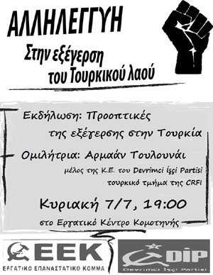 Αλληλεγγύη στην εξέγερση του Τούρκικου λαού
