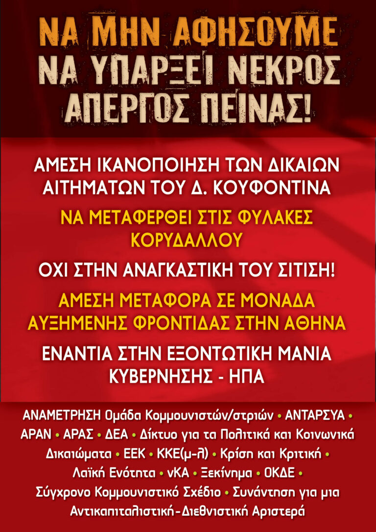 Να μην αφήσουμε να οδηγηθεί στο θάνατο ο απεργός πείνας