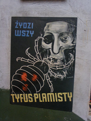 Aντισημιτική αφίσα των ναζί στην κατεχόμενη Κρακοβία που παρουσιάζει τους Eβραίους ως φορείς τύφου