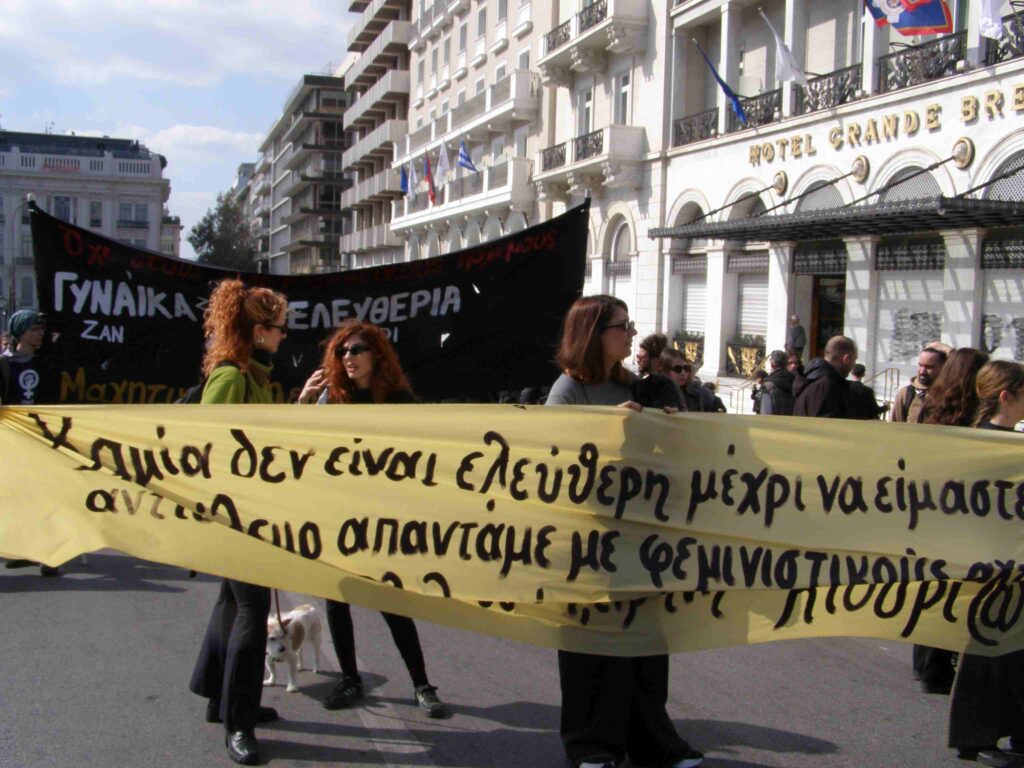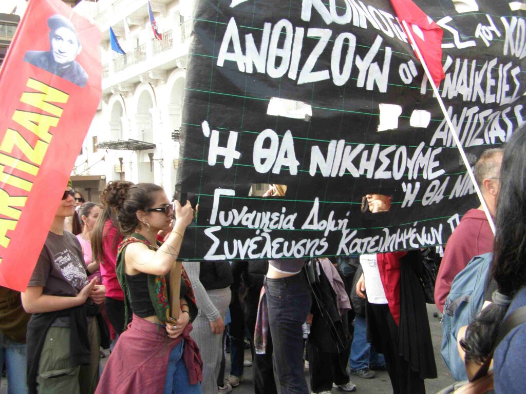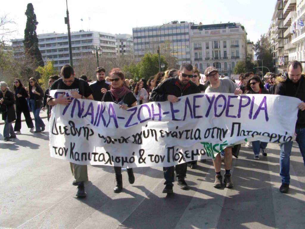 Με διαδηλώσεις σε όλο τον κόσμο και μαζική συμμετοχή στην Αθήνα τιμήθηκε η Παγκόσμια Ημέρα της Γυναίκας στις 8 Μάρτη. Αρκετές χιλιάδες ανθρώπων συγκεντρώθηκαν στην οδό Σταδίου, από την πλατεία Κλαυθμώνος, όπου η ΑΔΕΔΥ είχε ορίσει τη συγκέντρωσή της μέχρι το Άγαλμα του Κολοκοτρώνη και την οδό Αμερικής.