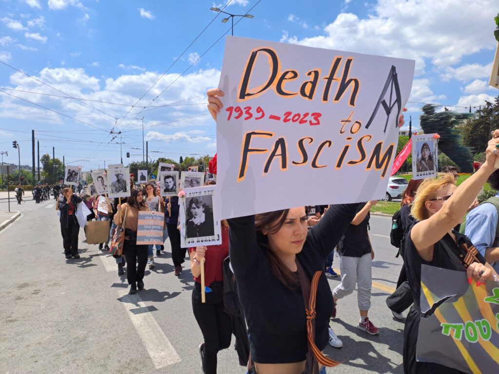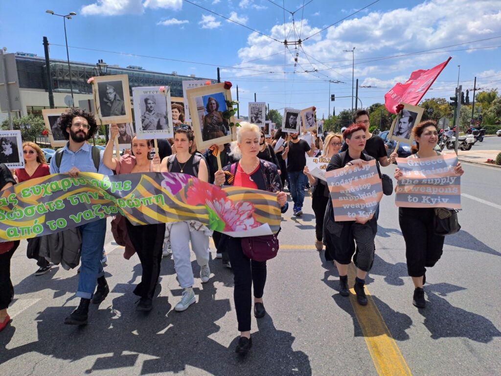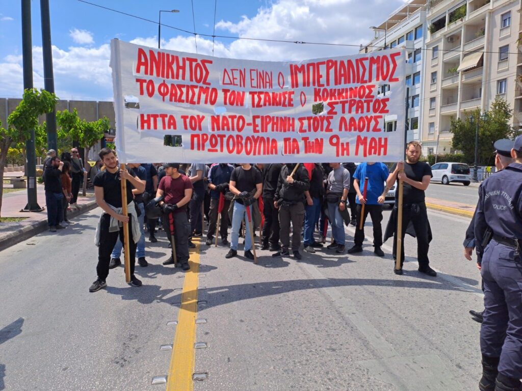 Κοντά στους 200 συντρόφους και συντρόφισσες διαδήλωσαν από το σταθμό του μετρό Ευαγγελισμός στην αμερικανική πρεσβεία, φωλιά της ιμπεριαλιστικης τρομοκρατίας. Το Εργατικό Επαναστατικό Κόμμα συμμετείχε στη διαδήλωση που οργανώθηκε από την Πρωτοβουλία για την 9η Μάη. Την διαδήλωση στήριξε ο αντι-ιμπεριαλιστικός συντονισμός για την Ήττα του ΝΑΤΟ, ενώ με πανό συμμετείχαν το Λαϊκό Μέτωπο από την Τουρκία, η παγκόσμια αντι-ιμπεριαλιστική πλατφόρμα. Το ιδιαίτερο “χρώμα” τους έδωσαν γυναίκες και άνδρες από τη ρωσική παροικία, παρότι το έμαθαν λίγες ώρες πριν και δεν πρόλαβαν να κινητοποιηθούν. Επίσης νέα παιδιά στα πλαίσια του Immortal Regiment, του Αθάνατου Συντάγματος με πλακάτ πρόσωπα αγωνιστών. Το κάλεσμα για τη συγκρότηση της Πρωτοβουλίας για την 9η Μάη είχε απευθύνει ο Πολιτικός Χώρος “Ηλέκτρα Αποστόλου” και στηρίχθηκε από τη Λαϊκή Δράση, την Εργατική Ομάδα Τ-34, τον Σύλλογο Κορδάτο, Επαναστατική Ενοποίηση, Εργατικό Αγώνα και ανένταχτους αγωνιστές και αγωνίστριες.