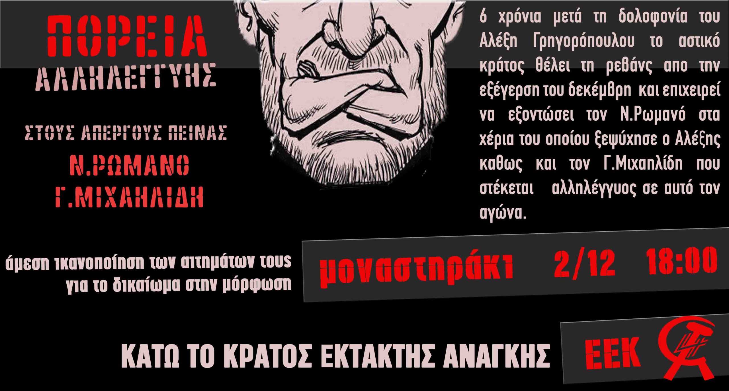 Πρέπει να κλιμακωθεί το κίνημα αλληλεγγύης στο Νίκο Ρωμανό, οι διαδηλώσεις, οι καταλήψεις παντού!