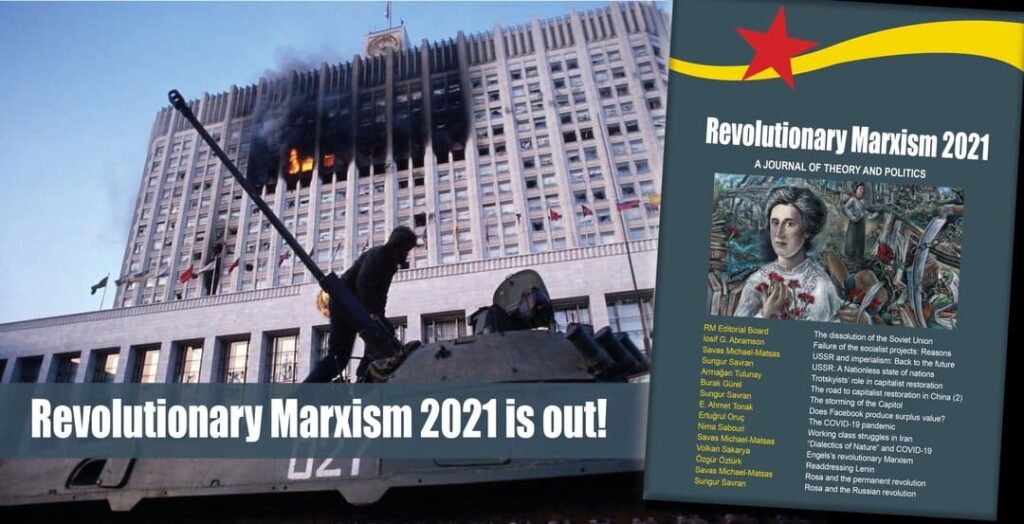Ο Επαναστατικός Μαρξισμός και η μητρική του έκδοση στην τουρκική γλώσσα DevrimciMarksizm δεν σιώπησε όταν ήρθε αντιμέτωπος με αυτό το έγκλημα κατά του προλεταριάτου και της ανθρωπότητας γενικότερα. Το ζήτημα της διάλυσης και της κατάρρευσης της Σοβιετικής Ένωσης και της γενικότερης κατάρρευσης των εργατικών κρατών διεθνώς και της ουσιαστικής αποκατάστασης του καπιταλισμού σε χώρες όπως η Κίνα, το αναλάβαμε επίμονα και συστηματικά, περισσότερο στην τουρκική τριμηνιαία έκδοση παρά στην ετήσια αγγλική έκδοση λόγω καθαρής έλλειψης χώρου στην τελευταία. Αφιερώσαμε κάποια τεύχη εξ ολοκλήρου σε αυτό το ζήτημα, είτε πρόκειται για την κατάρρευση του σοσιαλισμού στη χώρα της Οκτωβριανής Επανάστασης είτε για τη σταδιακή και ουσιαστική καταστροφή του εργατικού κράτους στην Κίνα. Σε αυτή την 30ή επέτειο της διάλυσης της Σοβιετικής Ένωσης, μια στιγμή καμπής στην παρούσα εποχή μας, συζητάμε για το ζήτημα της πτώσης του σοβιετικού κράτους, τη μοναδικότητά του στη σύγχρονη ιστορία, τις βαθύτερες αιτίες της κατάρρευσής του και τις προοπτικές του για το μέλλον.