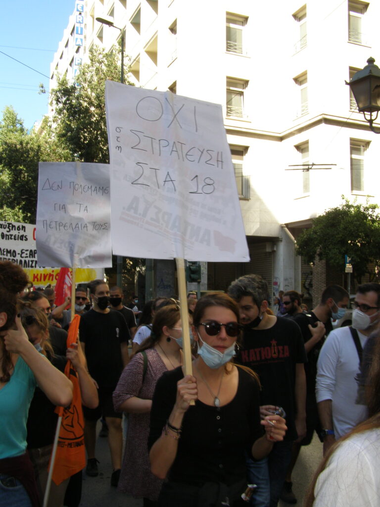 Η διαδήλωση άρχισε στις 2 το μεσημέρι από τα Προπύλαια και κινήθηκε μέσω Σταδίου έφθασε στο Σύνταγμα και τερμάτισε στα Προπύλαια, με τους εκατοντάδες διαδηλωτές να φωνάζουν συνθήματα αντιπολεμικά, ενάντια στον ιμπεριαλισμό, την Κυβέρνηση και την άρχουσα τάξη και για τον διεθνισμό. Επίσης φωνάζονταν συνθήματα ενάντια στη σχεδιαζόμενη στράτευση στα 18! Στο μπλοκ του ΕΕΚ φωνάζαμε συνθήματα διεθνιστικής προοπτικής, ενάντια στον εθνικισμό, τον πόλεμο και τον φασισμό, με σαφή ρήξη με κάθε μορφή παραχώρησης στον “φιλειρηνισμό” που αρνείται να παλέψει εναντίον των ευθυνών της “δικής του” πατρίδας.