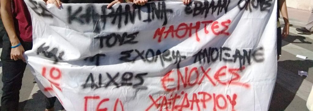 Την Τετάρτη 30-09-20 οι μαθητές του 1ου Γυμνασίου Χαϊδαρίου που βρισκόταν για δεύτερη εβδομάδα σε κατάληψη, αναγκάστηκαν να πραγματοποιήσουν την ψηφοφορία τους για την συνέχιση ή όχι της κατάληψης σε κλίμα εκφοβισμού και τρομοκρατίας.