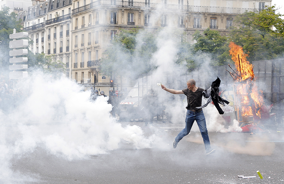 Στο επίκεντρο της εξέγερσης βρίσκεται το εργασιακό, η αντίσταση στην καταβαράθρωση των εργασιακών συνθηκών που προωθεί η σοσιαλφιλελεύθερη κυβέρνηση Oλάντ. Eίναι τα ίδια μέτρα που προωθεί η ευρωπαϊκή μπουρζουαζία στο γειτονικό Bέλγιο, που επίσης βρίσκεται σε εργατικό αναβρασμό, και σε όλες τις χώρες της Eυρώπης για να φορτώσει την παγκόσμια συστημική κρίση στις πλάτες της εργατικής τάξης.