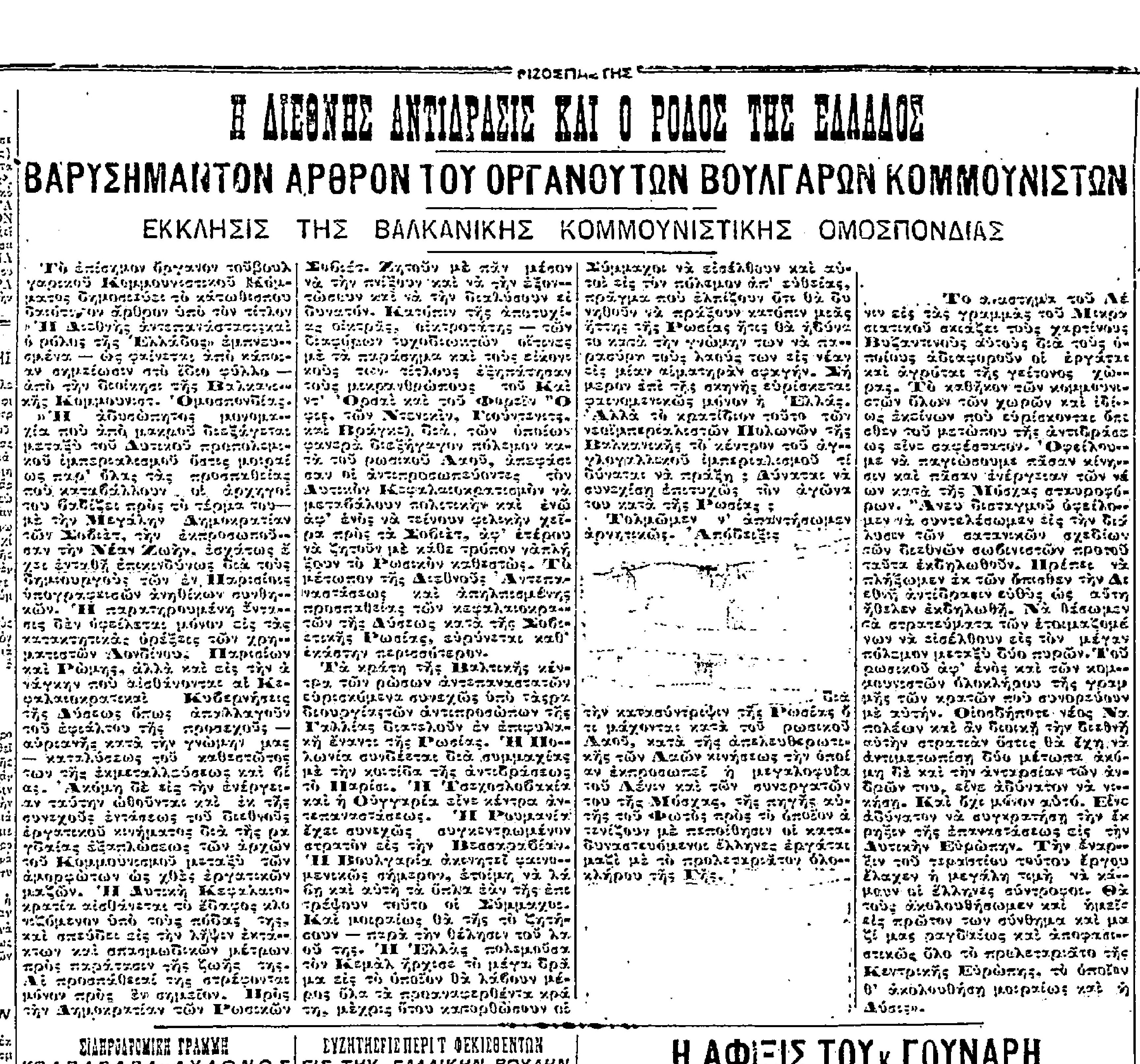 Από την ιστορία του επαναστατικού κινήματος: Η διεθνής αντίδρασις και ο ρόλος της Ελλάδος