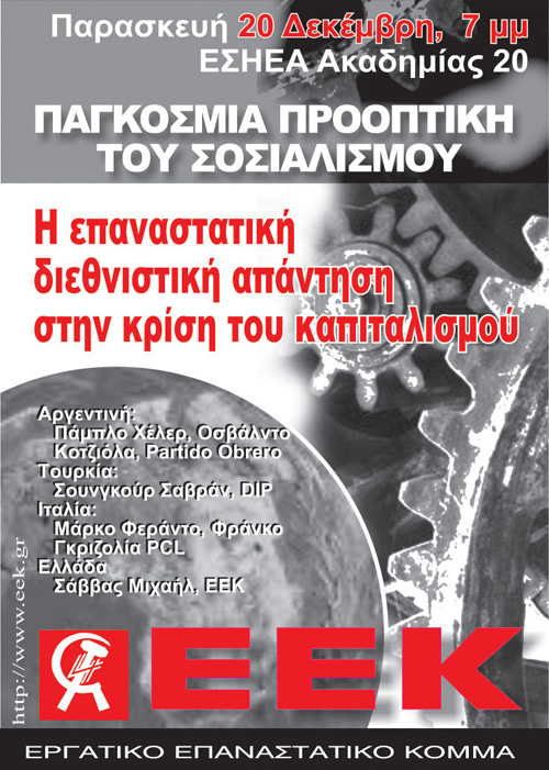 ΠOY BAΔIZEI O KOΣMOΣ; Ποια η παγκόσμια προοπτική του σοσιαλισμού; Mπορεί να δοθεί μια εργατική επαναστατική και διεθνιστική απάντηση στην παγκόσμια κρίση του καπιταλισμού, ενάντια στην κοινωνική καταστροφή της λιτότητας, των μνημονίων και ενάντια στους παλιούς βρυκόλακες του φασισμού που επιχειρούν να βγουν από τα χρονοντούλαπα της ιστορίας;