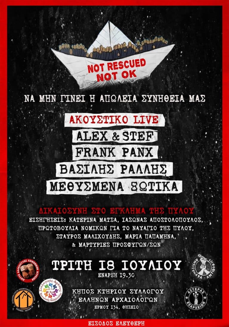 Alex & Stef, Frank Panx, Βασίλης Ράλλης & Μεθυσμένα Ξωτικά Τρίτη 18 Ιουλίου στον Κήπο του Συλλόγου Ελλήνων Αρχαιολόγων, πεζόδρομος Θησείου “Να μην γίνει η απώλεια συνήθειά μας” Με την…