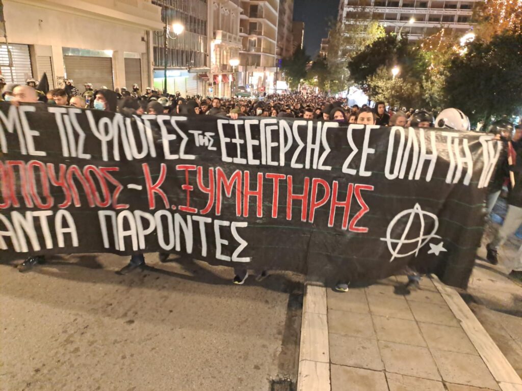 “Αυτές οι μέρες είναι του Αλέξη – το κίνημα δεν είπε την τελευταία λέξη”, φώναζαν χιλιάδες στόματα – για να συνεχίσουν με το “λευτεριά στο Νίκο Ρωμανό” – τον φίλο και συμμαθητή, στα χέρια του οποίου ξεψύχησε ο 15χρονος Αλέξανδρος. Ο Νίκος Ρωμανός κρατείται εκδικητικά προφυλακισμένος στις φυλακές Κορυδαλλού. Μαζί με αυτά φωνάζονταν συνθήματα ενάντια στο δολοφονικό καπιταλιστικό κράτος και τα ένστολα σώματα που κατά χιλιάδες κινητοποίησε η κυβέρνηση Μητσοτάκη, και για την ανατροπή του Μητσοτάκη. Και συνθήματα που υπενθύμιζαν τις αστυνομικές και φασιστικές δολοφονίες των Κουμή – Κανελλοπούλου, του επίσης 15χρονου Μιχάλη Καλτεζά, των τσιγγανόπουλων πάνω στα σώματα των οποίων “εξοστρακίστηκαν” οι σφαίρες των αστυνομικών, του Βασίλη Μάγγου και του δολοφονημένου από τους ναζιστές χρυσαυγίτες Παύλου Φύσσα.