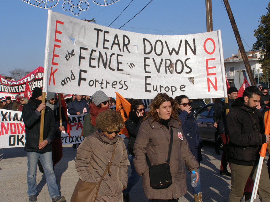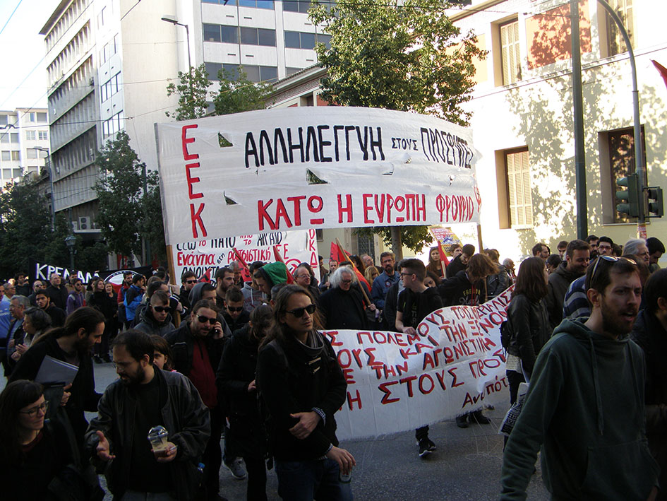 2. Η κυβέρνηση ΣΥΡΙΖΑ-ΑΝΕΛ, παράλυτη μέσα από τα δικά της αδιέξοδα, πειθαρχεί σε όσα υπέγραψε το προηγούμενο καλοκαίρι, για την εφαρμογή των φρικαλεοτήτων του τρίτου και των προηγούμενων μνημονίων. Tαυτόχρονα, με τη διατήρηση του φράχτη στον Έβρο, την αποδοχή των νατοϊκών δυνάμεων στο Αιγαίο, και τη σύμπλευση με τη Γερμανία, έχει δρομολογήσει την στρατιωτικοποίηση της διαχείρισης του προσφυγικού, με κέντρα εγκλεισμού προσφύγων σήμερα, που πολύ εύκολα μπορεί να μετατραπούν σε στρατόπεδα συγκέντρωσης. Aλλά, ήδη, κέντρα κράτησης μεταναστών και προσφύγων που συλλήβδην χαρακτηρίζονται μετανάστες, ήδη λειτουργούν – πέραν από κάθε δικαιικό σύστημα, καθώς δεν είναι ποινικό αδίκημα η προσφυγιά. Στη θέση της “Aμυγδαλέζας [που] ποτέ δεν έκλεισε”, κατά την ρήση του αρμόδιου υπουργού Mουζάλα, πολλές Aμυγδαλέζες ήδη λειτουργούν ανά την Eλλάδα. Το προσφυγικό ζήτημα, τονίζει ακόμα περισσότερο την αδυναμία της αστικής εξουσίας και της κυβέρνησής της, να αντιμετωπίσει τις συνέπειες της κρίσης, ρίχνοντας τα βάρη της σε ντόπιους και μετανάστες κολασμένους. Το αστικό πολιτικό σύστημα βρίσκεται χωρίς ισχυρές εφεδρείες και η εναλλακτική που μπορεί να προσφέρει (π.χ. Ν.Δ.), είναι η βίαιη εκδίωξη ή ο εγκλεισμός σε στρατόπεδα συγκέντρωσης των προσφύγων και μεταναστών, όπως άλλωστε και η ομηρία εκατομμυρίων ανέργων, αστέγων, και ελαστικά εργαζόμενων.