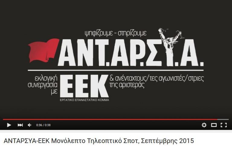 Δείτε και τα υπόλοιπα σποτάκια: https://www.youtube.com/watch?v=CPmr98c_HeE https://www.youtube.com/watch?v=h4uDLJThrKQ https://www.youtube.com/watch?v=GGzdS2mphN0 Δειτε τη διακαναλική συνέντευξη τυπου της εκλογικής συνεργασίας ΑΝΤΑΡΣΥΑ-ΕΕΚ Ακούστε τη συμμετοχή του ΕΕΚ(σ.Νίκος Πελεκούδας) σε προεκλογικό στρογγυλό τραπέζι στον 9.84…