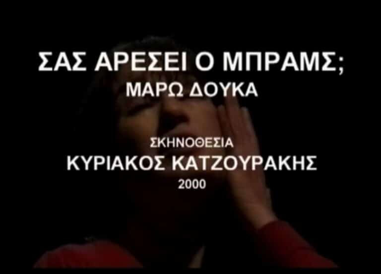 Παραθέτουμε το βίντεο της παράστασης “Σας αρέσει ο Μπραμς;”. Πρόκειται για ένα κείμενο της Μάρως Δούκα σε σκηνοθεσία του Κυριάκου Kατζουράκη. Πρωταγωνιστεί η Κάτια Γέρου. Το παρόν βίντεο μαζί με…