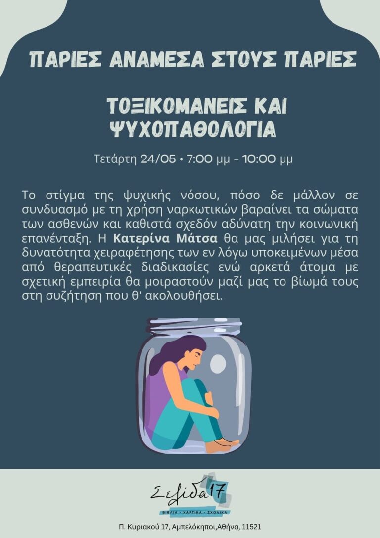 Μια πολύ ενδιαφέρουσα εκδήλωση – βιβλιοπαρουσίαση, γίνεται την Τετάρτη 24 Μάη, 7 μ.μ., στο βιβλιοπωλείο Σελίδα 17, στους Αμπελόκηπους. Η εκδήλωση οργανώνεται από το Δίκτυο Αλληλεγγύης Κοινωνικών Ιατρείων και τις…