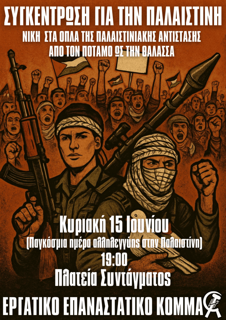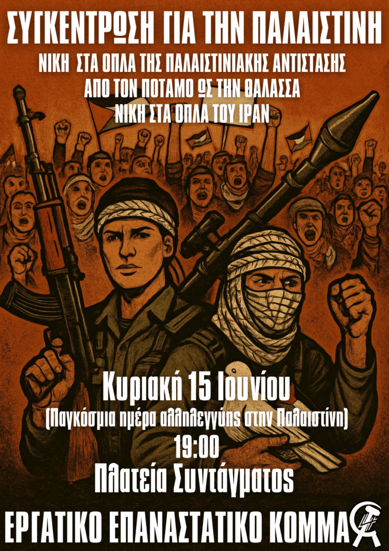 Πλημμυρίζουμε όλες τις πλατείες της Ελλάδας και του Κόσμου Να σταματήσει η γενοκτονία στη Γάζα – Κάτω ο σιωνισμός και ο ιμπεριαλισμός – Λευτεριά στην Παλαιστίνη! – Νίκη στο Ιράν!…