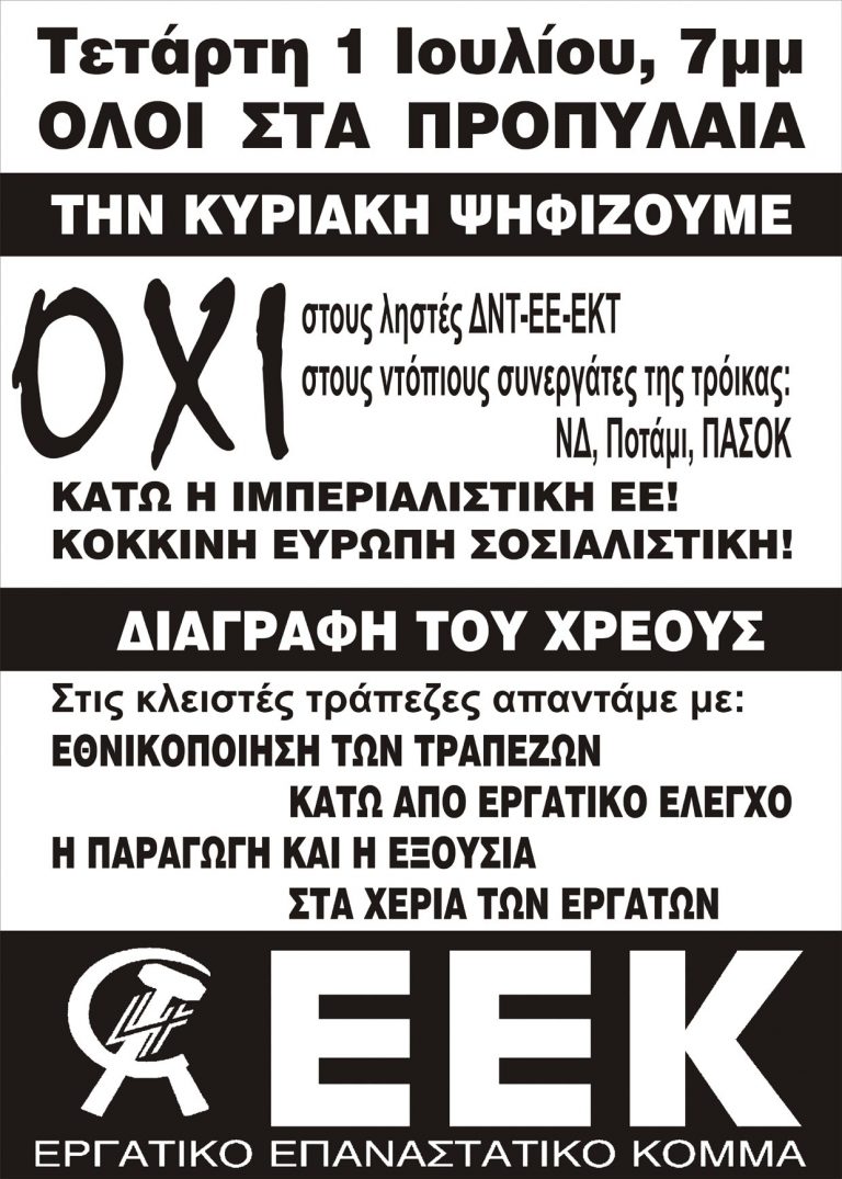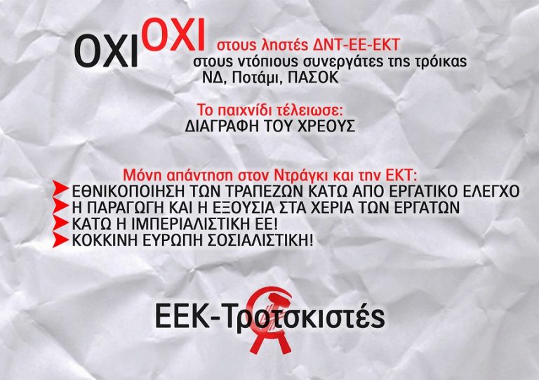 ΟΧΙ στους ληστές ΔΝΤ-ΕΕ-ΕΚΤΟΧΙ στους ντόπιους συνεργάτες της τρόικας ΝΔ, Ποτάμι, ΠΑΣΟΚ Το παιχνίδι τέλειωσε:ΔΙΑΓΡΑΦΗ ΤΟΥ ΧΡΕΟΥΣ Μόνη απάντηση στον Ντράγκι και την ΕΚΤ: …