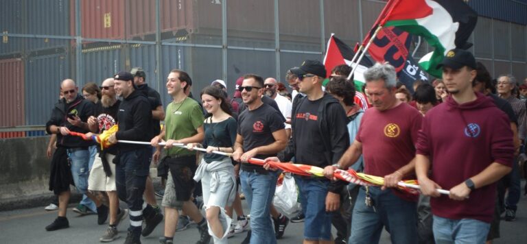 Διαδήλωση στο Δημαρχείο της Γένοβας την Παρασκευή 25 Ιουλίου. Το Συνδικάτο Βάσης USB έτοιμο για απεργία για να αποτρέψει τις εργασίες φόρτωσης και εκφόρτωσης πολεμικού υλικού για το Ισραήλ του…
