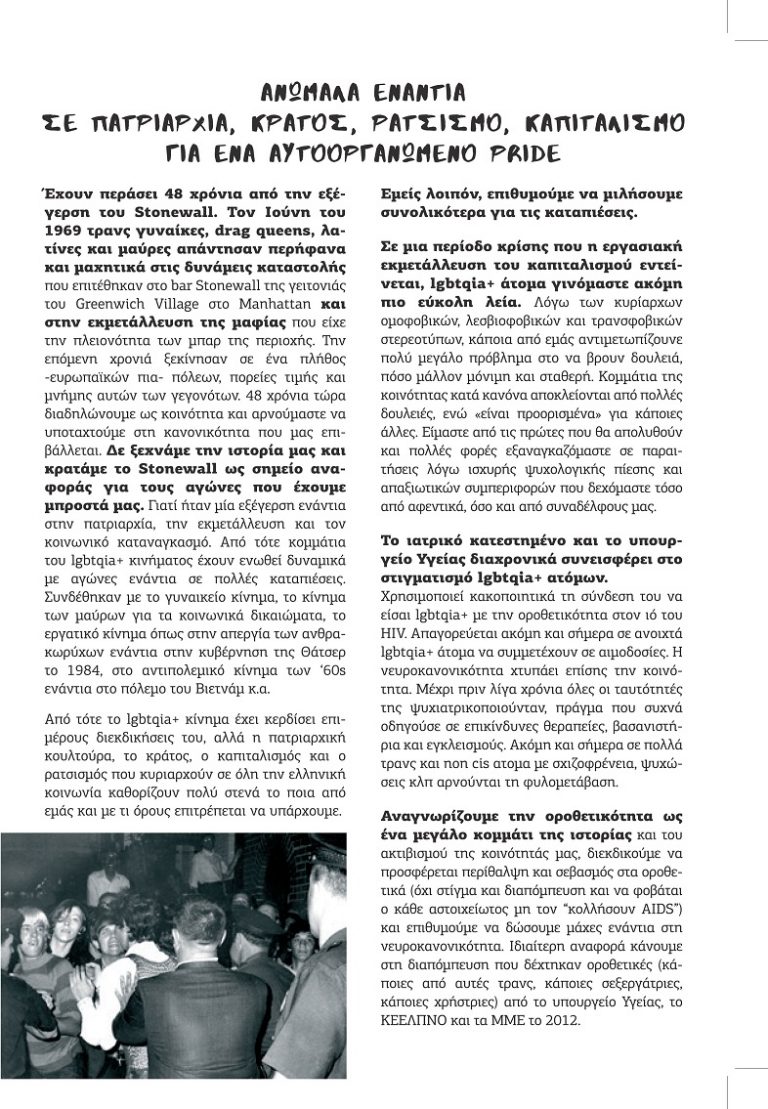 ENGLISH Έχουν περάσει 48 χρόνια από την εξέγερση του Stonewall. Τον Ιούνη του 1969 τρανς γυναίκες, drag queens, λατίνες και μαύρες απάντησαν περήφανα και μαχητικά στις δυνάμεις καταστολής που επιτέθηκαν…