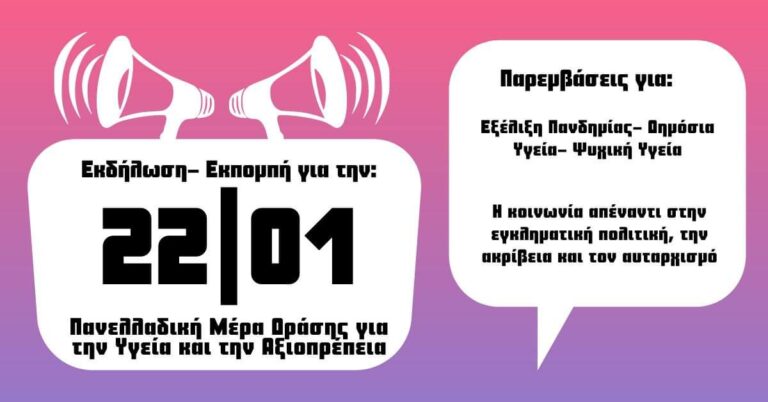 Συγκέντρωση Σάββατο 22/1, 12 μ.μ., πλ. Αγ. Νικολάου Η Υγεία ΔΕΝ είναι εμπόρευμα! Η ζωή μας πάνω από τα κέρδη τους! Το Σάββατο 22/1 σε όλες τις πόλεις της χώρας…