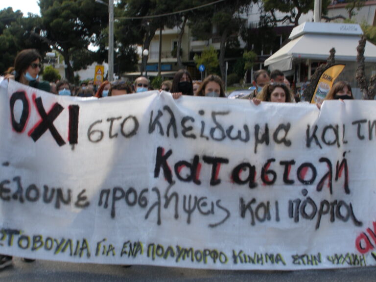 Πορεία στους δρόμους του Χαϊδαρίου Θόδωρος Κουτσουμπός Φωνές γυναικείες, νεανικές, αρχικά, μετά όλων των ειδών: “H ψυχική υγεία όλους μας αφορά. Δαφνί, Δρομοκαΐτειο, ανοίχτε τα κελιά”, “o εγκλεισμός δεν είναι…