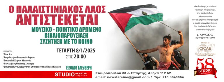 Τετάρτη 8 Ιανουαρίου στις 20:00 Το New Star, Επιμελητήριο Εικαστικών Τεχνών, Σωματείο Ελλήνων Ηθοποιών, Πανελλήνιος Μουσικός Σύλλογος και Σωματείο εργαζομένων στον Οπτικοακουστικό Τομέα Κλακέτα διοργανώνει εκδήλωση την Τετάρτη 8 Ιανουαρίου…