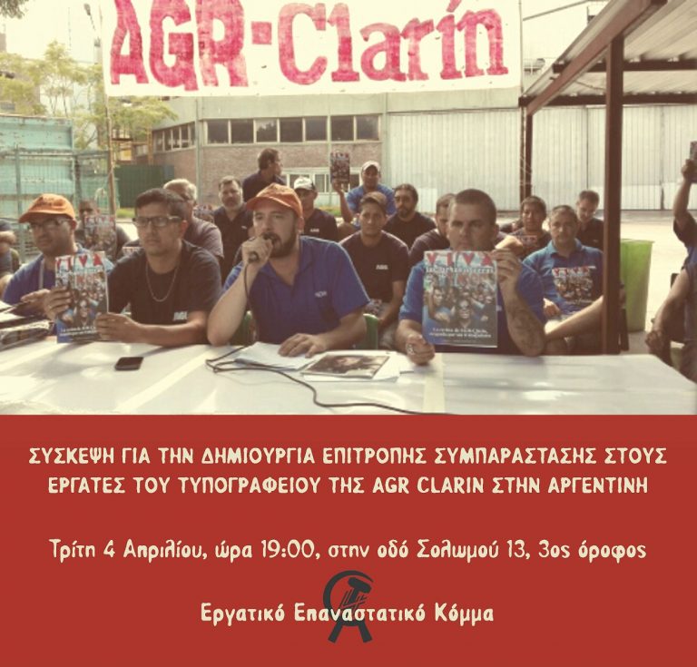 «Ζήτω οι αγώνες των εργατών», τιτλοφορείται το απεργιακό περιοδικό που εκδίδουν οι εργαζόμενοι του κατειλημμένου εργοστασίου της AGR-Clarin, στην Aργεντινή, που αγωνίζονται ενάντια στις απολύσεις. 384 οικογένειες πετιούνται στο δρόμο…