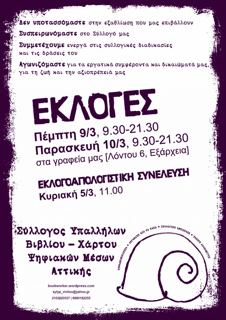 Συνεχίζουμε και δυναμώνουμε τους αγώνες μας για τα εργατικά συμφέροντα και δικαιώματά μας, για τη ζωή και την αξιοπρέπειά μας. Ο Σύλλογός μας, η φωνή και η δύναμή μας….