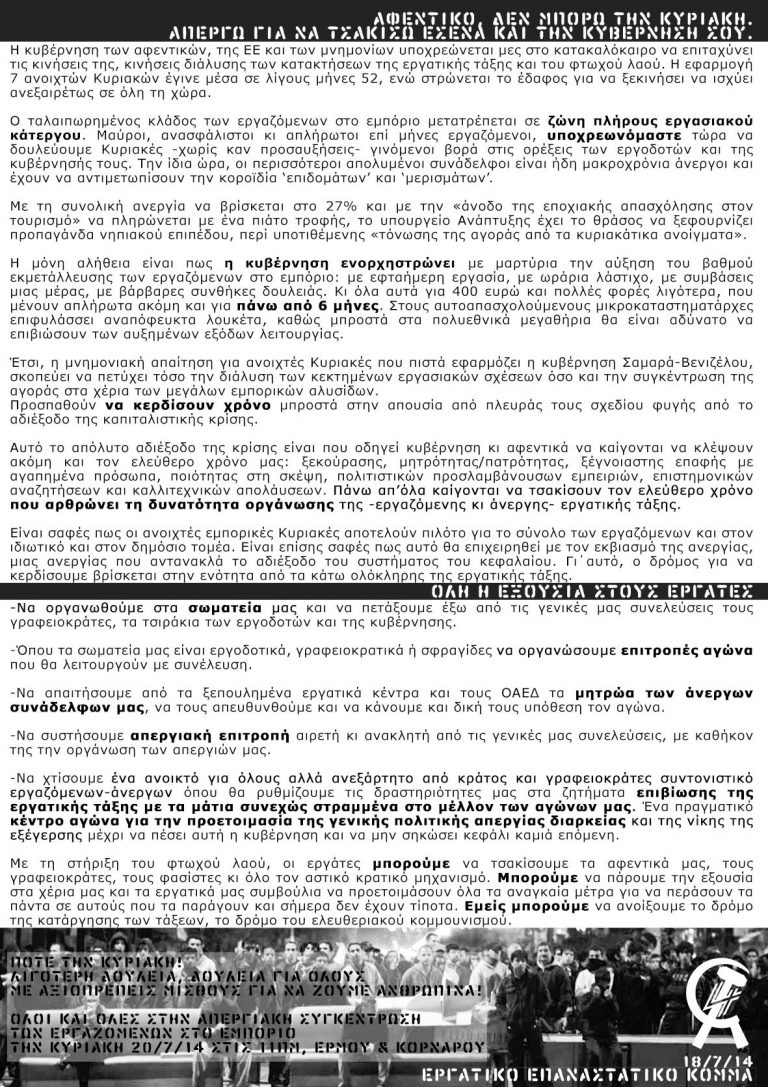 “ΑΦΕΝΤΙΚΟ ΔΕΝ ΜΠΟΡΩ ΤΗΝ ΚΥΡΙΑΚΗ. ΑΠΕΡΓΩ ΓΙΑ ΝΑ ΤΣΑΚΙΣΩ ΕΣΕΝΑ ΚΑΙ ΤΗΝ ΚΥΒΕΡΝΗΣΗ ΣΟΥ.” Η κυβέρνηση των αφεντικών, της ΕΕ και των μνημονίων υποχρεώνεται μες στο κατακαλόκαιρο να επιταχύνει τις…