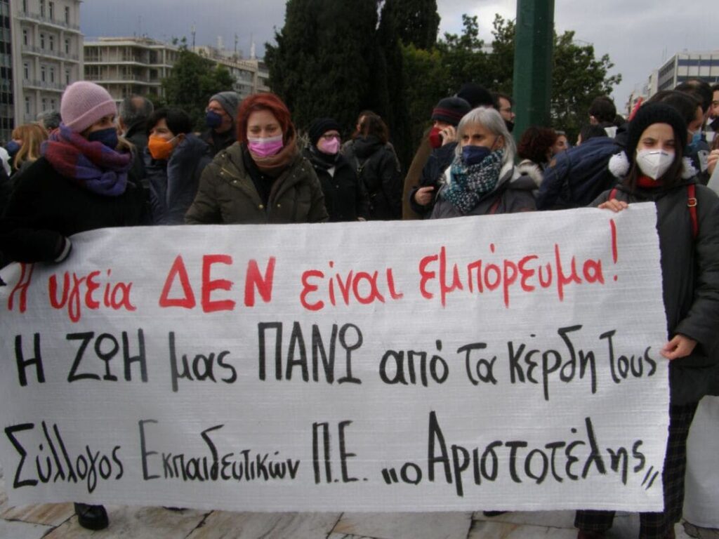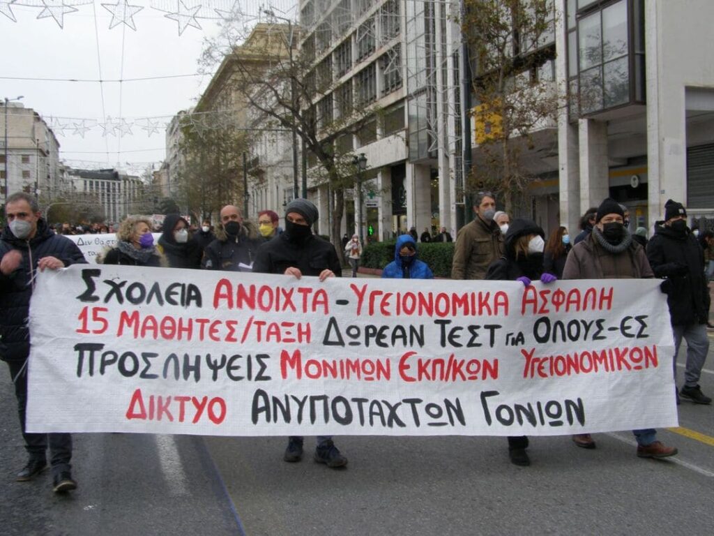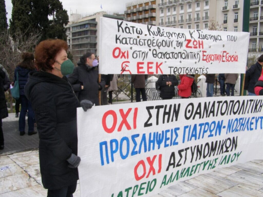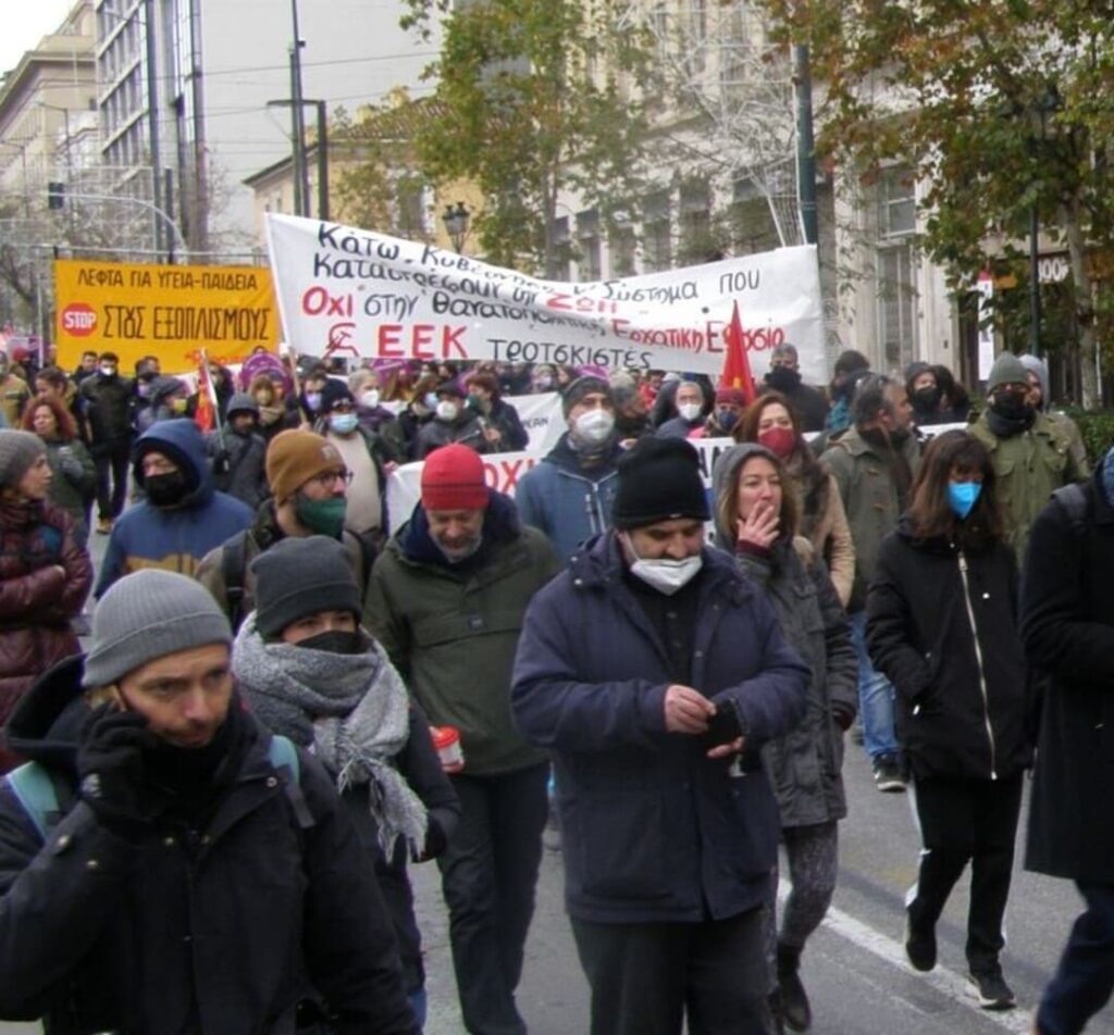 Επίσης στέκια, συλλογικότητες και οργανώσεις (από τον χώρο της αναρχίας και της αριστεράς) καλούν σε συγκέντρωση για την υπεράσπιση της δημόσιας υγείας, ενάντια στην εγκληματική διαχείριση της πανδημίας και τον ανορθολογισμό, την Πέμπτη 27/1, στις 18:00 στο υπουργείο Υγείας και σε διαδήλωση το Σάββατο 5 Φεβρουαρίου, στις 13:00, στην πλατεία Συντάγματος. Το ΕΕΚ συμμετέχει στην κινητοποίηση.