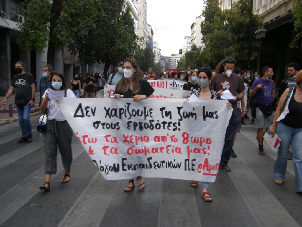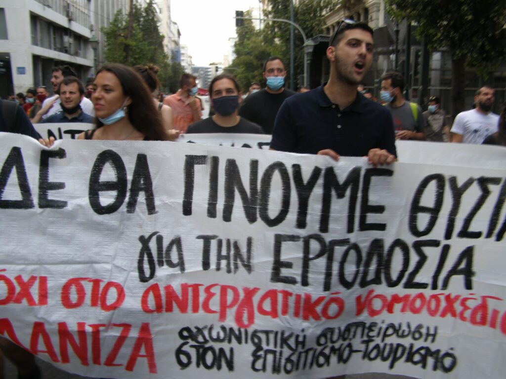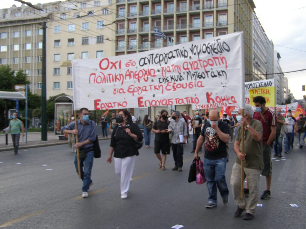 Περί τους 800 διαδηλωτές φώναξαν συνθήματα ενάντια στο νόμο που καταργεί το 8ωρο της εργάσιμης ημέρας, επιμηκύνει το χρόνο εργασίας με την καθιέρωση, απλήρωτης ουσιαστικά, υπερωρίας, ενώ θέτει τα σωματεία και τις εργατικές διαδικασίες υπό τον απόλυτο κρατικό έλεγχο, με ψηφιακές διαδικασίες ψηφοφοριών, που μετατρέπουν τους εργαζόμενους σε απλές ατομικότητες και όχι μέρος συλλογικοτήτων που συνδιαμορφώνουν, μέσα από ανταλλαγές απόψεων, αντιπαραθέσεις και συνθέσεις, την συλλογική ταξική δύναμη.