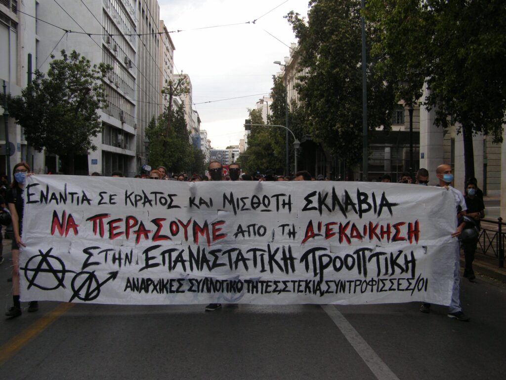 Οι διαδηλωτές φώναξαν συνθήματα ενάντια στην κυβέρνηση, αλλά και κατά της συνδικαλιστικής γραφειοκρατίας που αρνείται να πάρει αποφάσεις απεργιακής δράσης κατά του άνομου νόμου της κυβέρνησης Μητσοτάκη.