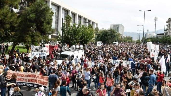Είναι χαρακτηριστικό, ότι η μεγαλειώδης απεργία των εκπαιδευτικών, με πάνω από 70% συμμετοχή, με χιλιάδες στους δρόμους στις απεργιακές συγκεντρώσεις, έγινε χωρίς στα αιτήματά τους να υπάρχουν οικονομικά ή στενά κλαδικά αιτήματα, αλλά με μόνο αίτημα το μπλοκάρισμα της λεγόμενης “αξιολόγησης των σχολικών μονάδων”. Αυτό που θέλει η κυβέρνηση με την μισητή ακροδεξιά υπουργό παιδείας Κεραμέως είναι να διαχωρίσει τα σχολεία σε προνομιούχα, για την άρχουσα τάξη, και σχολεία-αποθήκες για τις λαϊκές και εργατικές περιοχές. Ο αγώνας των εκπαιδευτικών είναι μεγαλειώδης, γιατί υπερασπίζονται το δικαίωμα στην μόρφωση ΟΛΟΥ του λαού. Προσπαθούν να εφαρμόσουν και στην Ελλάδα, τα αποτυχημένα συστήματα που ισχύουν στην Αμερική, Αγγλία και εν μέρει στην Γερμανία, όπου και εκεί ακόμα αναγνωρίζουν ότι έχουν αποτύχει. Αυτό που εκφράζεται σε αυτό τον αγώνα είναι η λαϊκή δυσαρέσκεια και αντίδραση στην καταστροφή που προετοιμάζει η ακροδεξιά κυβέρνηση Μητσοτάκη.