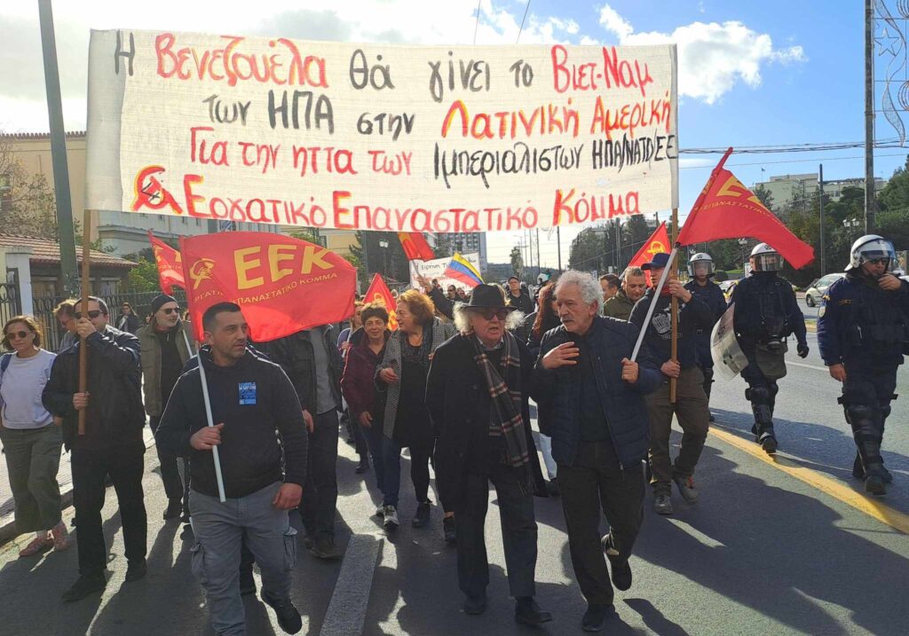 Ο αμερικανικός ιμπεριαλισμός, στο όνομα της «αποκατάστασης της αμερικανικής ισχύος» και των «αμερικανικών συμφερόντων ασφάλειας», διεξάγει τον πόλεμο δι’ αντιπροσώπων του ΝΑΤΟ στην Ουκρανία, ενώ στηρίζει τη σιωνιστική γενοκτονία του παλαιστινιακού λαού στη Γάζα. Ταυτόχρονα κλιμακώνει την πολεμική επίθεση στη Βενεζουέλα και τη Λατινική Αμερική και πολιορκεί το Ιράν. Με αυτή τη στρατηγική καταβυθίζει την ανθρωπότητα στον κίνδυνο ενός Γ΄ Παγκόσμιου Πολέμου.