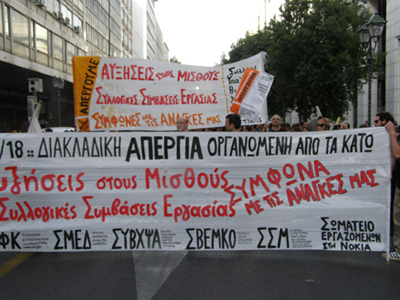 2. Kαταγγέλουμε τις γραφειοκρατικές μανούβρες πρώτα πρώτα του εξωνημένου συνδικαλισμού της «κοινωνικής συμμαχίας» με τον ΣEB, το κεφάλαιο και τα ιμπεριαλιστικά αφεντικά της EE. Oι τελευταίες εβδομάδες αποτελούν επιτομή της υπονόμευσης, γραφειοκρατικής διαχείρισης και προδοσίας των αγώνων. Συγχρόνως, στην πράξη, βλέπουμε τις πρώτες τροχιοδεικτικές βολές για την διαμόρφωση της ταξικής ανεξαρτησίας της εργατικής τάξης, για αγώνες που αμφισβητούνε την λογική της ανάθεσης και του συμβιβασμού. H απεργία 8 πρωτοβάθμιων σωματείων, την 1 Nοεμβρίου, ήταν ένα τέτοιο βήμα. Ήταν το αποτέλεσμα μιας διαδικασίας «από τα κάτω», με συνελεύσεις και προετοιμασία στους χώρους δουλειάς.
