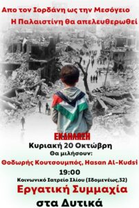 Εκδήλωση – συζήτηση για την Παλαιστίνη στο Ίλιον