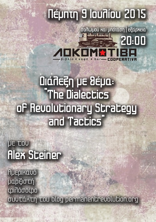Suggested reading to prepare for this talk: http://www.eek.gr/index.php/englishtext/3571-the-dialectics-of-revolutionary-strategy-and-tactics