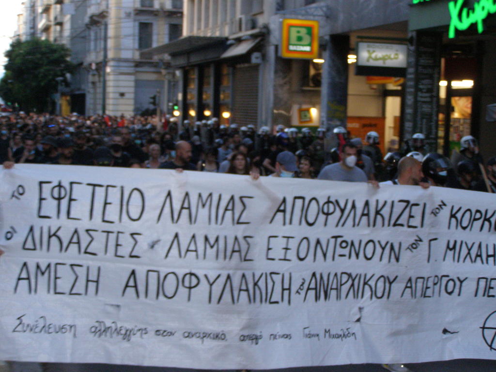 Ο Γιάννης Μιχαηλίδης, 34 ετών, βρίσκεται σε απεργία πείνας μέσα στις φυλακές εδώ και 50 ημέρες (ξεκίνησε στις 23/5/2022) διεκδικώντας το δικαίωμα που δίνει ο νόμος σε όλους τους φυλακισμένους, έχοντας εκτίσει πάνω από 8,5 χρόνια φυλακή. Την υφ’ όρον αποφυλάκισή του. Δηλαδή την εφαρμογή και στην περίπτωσή του του δικαιώματος που από τον νόμο εφαρμόζεται για τον δολοφόνο Κορκονέα, τους βιαστές και παιδοβιαστές και όλα τα “μπουμπούκια” της “καλής, αστικής” κοινωνίας. Όμως, στην περίπτωσή του, ο νόμος δεν έχει εφαρμογή γιατί στα μυαλά των δικαστών πρυτανεύει η ιδεολογία του Μιχαηλίδη (αναρχικός). Με βάση την ιδεολογία του κρίνουν αυστηρά τον Μιχαηλίδη, ενώ δίνουν ελαφρυντικά στους δολοφόνους, βιαστές και παιδοβιαστες.