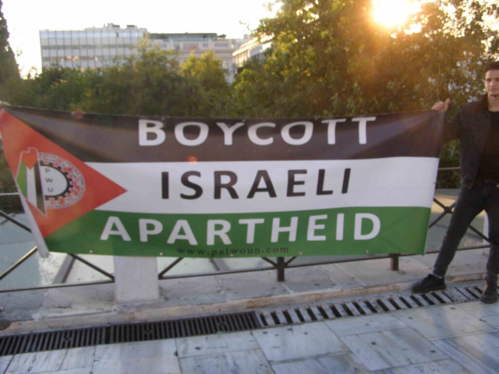 • Δράσεις, κινητοποιήσεις και εκδηλώσεις σε συνοικίες γειτονιές και εργασιακούς χώρους με σκοπό την ενημέρωση και ενίσχυση της αλληλεγγύης στον παλαιστινιακό λαό.