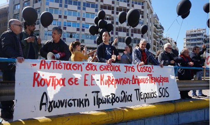 Μέσα στην πανδημία κορονοϊού με εκατοντάδες θανάτους συμπολιτών μας καθημερινά, με απαγορεύσεις μετακίνησης και διαμαρτυρίας, καταστροφής των οικογενειακών επιχειρήσεων, αρπαγής σπιτιών και μαγαζιών, μαζικής ανεργίας και μισθών 534 ευρώ, παρά την αντίθεση κατοίκων και φορέων της πόλης, η κινεζική εταιρεία COSCO, ιδιοκτήτης του Λιμανιού Πειραιά, συνεχίζει τα εγκληματικά της έργα σε βάρος της υγείας των κατοίκων και του φυσικού και αστικού περιβάλλοντος.