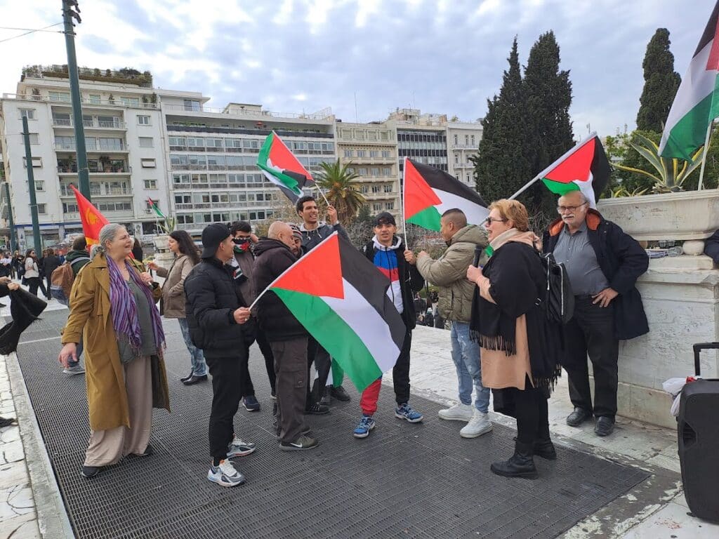 Για 6ο κατά σειρά Σάββατο (το Σάββατο 17 Ιανουαρίου) δεκάδες Έλληνες και Παλαιστίνιοι διαδηλωτές βρέθηκαν στο Σύνταγμα, απέναντι από τη Βουλή, διαδηλώνοντας υπέρ της Παλαιστίνης και του δοκιμαζόμενου Παλαιστινιακού λαού.