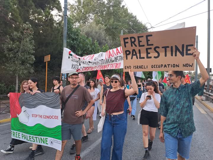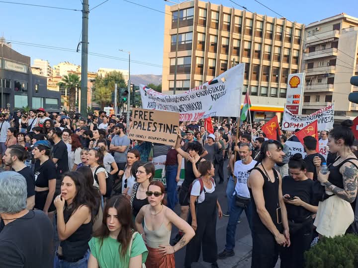 Χιλιάδες διαδήλωσαν το απόγευμα της Δευτέρας 9 Ιουνίου στην Αθήνα. Ήταν μια εντυπωσιακή διαδήλωση για την Παλαιστίνη, παρά την ζέστη, παρά την αργία του τριήμερου και, το κυριότερο, οργανωμένη μέσα σε λίγες ώρες. Ήταν η μαζική, λαϊκή καταδίκη της τρομοκρατικής στρατιωτικής επιχείρησης του ναυτικού και κομάντος του Ισραήλ, κατάληψης του πλοίου Ελευθερίας και ανθρωπιστικής βοήθειας στη Γάζα, με 12 γενναίους/εες. Το πλοιάριο Madleen κατελήφθη περί τις 3 τα χαράματα της Δευτέρας 9 Ιουνίου,στα διεθνή ύδατα, κοντά στην Αίγυπτο και 200 μίλια από την ακτή της Γάζας. Οι συνένοχες ιμπεριαλιστικες κυβερνήσεις, και η κυβέρνηση Μητσοτάκη στην Ελλάδα, όλοι αυτοί που επικαλούνται το διεθνές δίκαιο, δεν βρήκαν να πουν λέξη για αυτήν την ωμή, βάρβαρη παραβίαση των διεθνών κανόνων ναυσιπλοΐας. Κι ούτε λέξη για τη γενοκτονία σε βάρος του παλαιστινιακού λαού της Γάζας. Αλληλεγγύη στην Παλαιστίνη. Σταματήστε τη γενοκτονία στη Γάζα. Λευτεριά στους 12 του Madeleine.